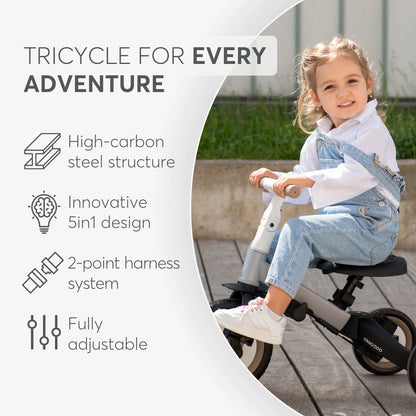 - 5in1 Design - Adaptable to various stages, including Push Mode, Tricycle, Tricycle without pedals, Balance Bike, and Bike, providing long-term use and value.