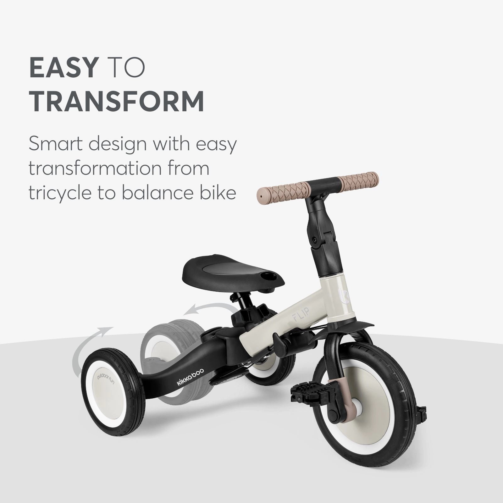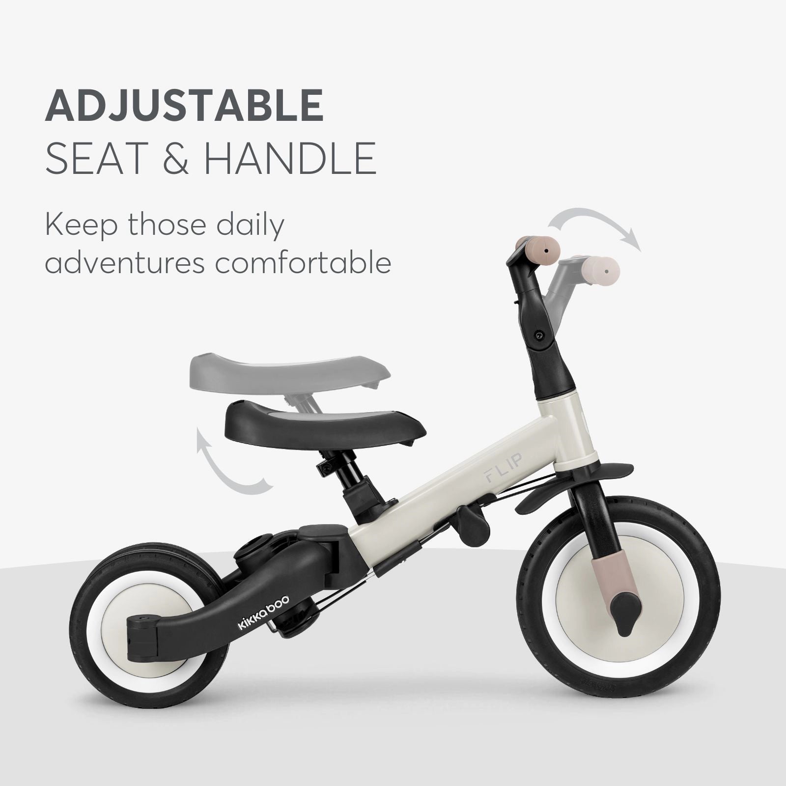 FLIP is the perfect companion for your child's early riding adventures, combining versatility, safety, and comfort in one stylish design. Whether used as a push trike for the youngest riders or as a balance bike for older children, it ensures enjoyable and secure rides at every stage.