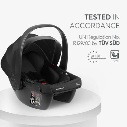 • MODENA comes complete with i-SIZE car seat (40-87 cm) and adaptors, allowing for easy transition from car to stroller to ensure you can move your sleeping baby without disturbance. The car seat is compatible with the highest safety standards and is highly adjustable, to provide opimum comfort and security for the child.